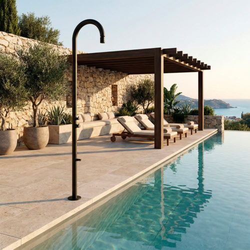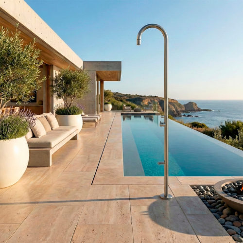 Mención especial merece la flexibilidad de instalación de nuestras duchas. A diferencia de las típicas duchas de exterior que requieren luz solar directa, las duchas SINED pueden colocarse a su discreción, lo que le permite elegir la ubicación ideal en su espacio exterior sin restricciones.