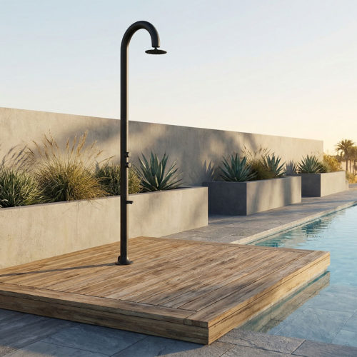 Estéticamente, las duchas de aluminio para piscinas con temporizador destacan por su diseño limpio y moderno. Su acabado metálico brillante o mate aporta un toque de elegancia a cualquier espacio exterior, complementando tanto piscinas tradicionales como modernas. Además, gracias a su diseño delgado y compacto, estas duchas no ocupan mucho espacio, lo que las convierte en una excelente opción para jardines, terrazas o áreas de piscina donde el espacio es limitado.