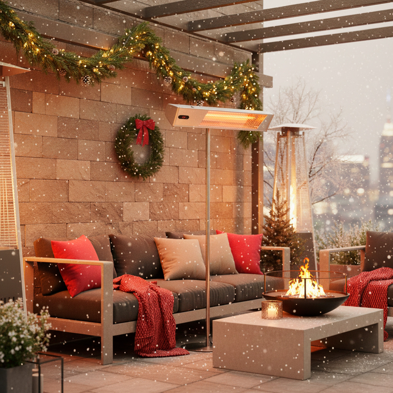Instruido con un práctico mando a distancia, el calefactor de exterior le permite controlar a distancia los ajustes, incluido el ajuste de potencia en tres niveles (100%, 66%, 33%), para un uso optimizado y personalizado. Además, el kit completo de poste ofrece una gran flexibilidad de instalación, permitiéndole colocar el calefactor donde desee, lo que lo hace ideal para cualquier entorno exterior.