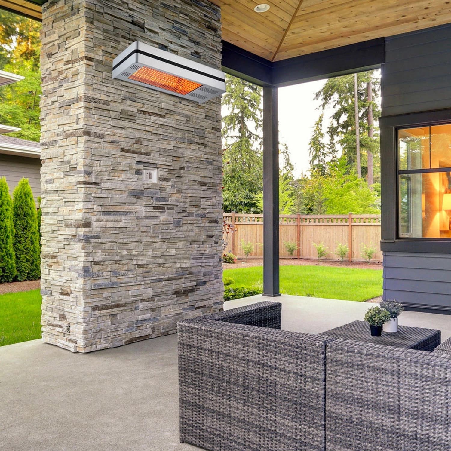 SINED Moderno Calefactor De Infrarrojos Con Potencia Ajustable De 2000w Fabricado En Acero y Aluminio Mando a Distancia Con Temporizador Incluido Protección Ip65 Radiación Asimétrica Para Una Mayor Superficie Radiada