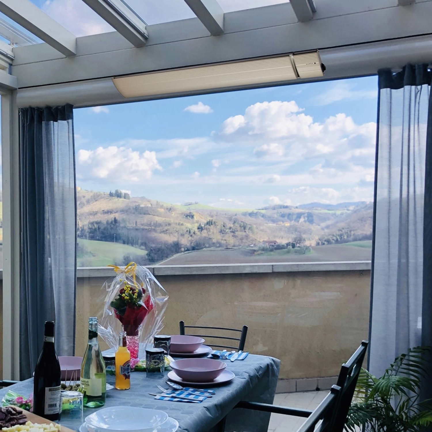 El panel infrarrojo exterior, con un grado de protección IP65, es resistente al polvo y a la lluvia, perfecto para su uso en invernaderos, terrazas cubiertas o zonas exteriores sin viento.