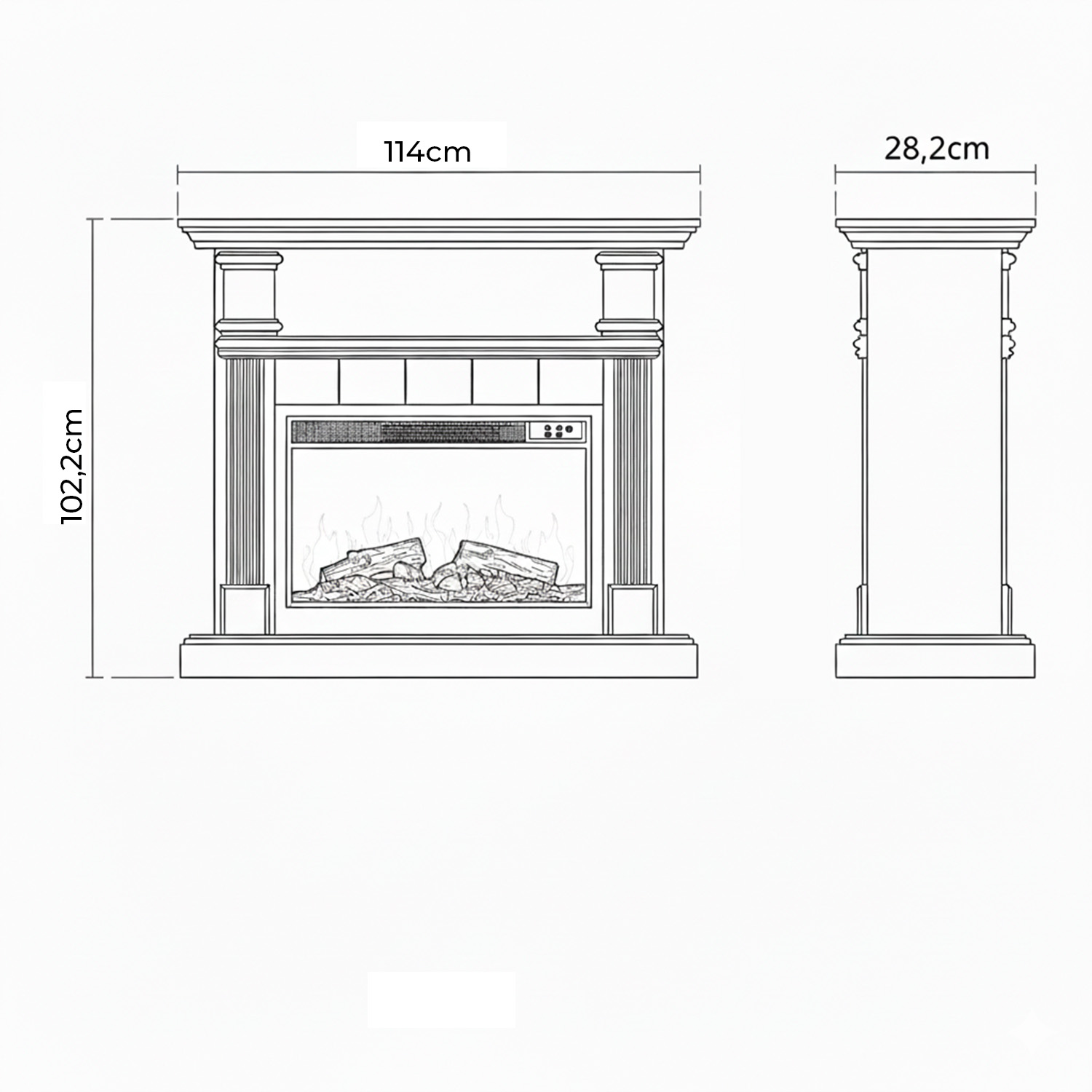 La luz LED integrada es muy realista. La profundidad de sólo 28 cm hace que ahorre espacio, perfecto para cualquier habitación. Todo ello manejable con un mando a distancia, la llama se puede encender independientemente del modo de calefacción. Además del mando a distancia, también puedes elegir las distintas opciones desde el panel frontal.