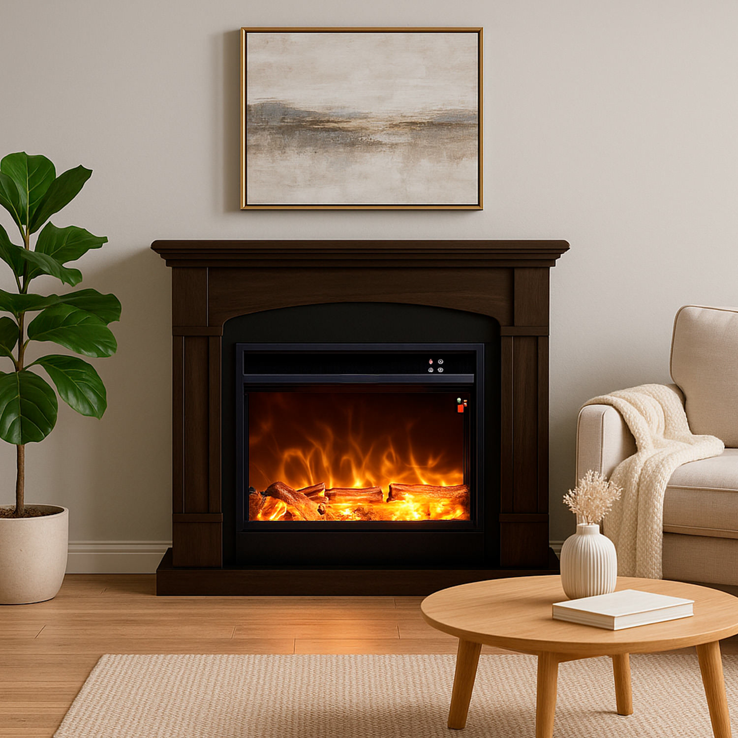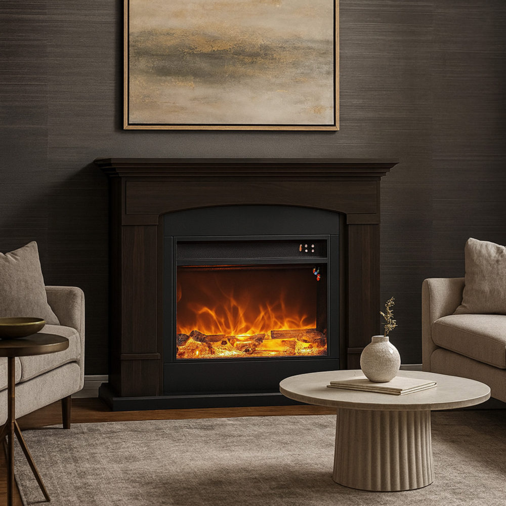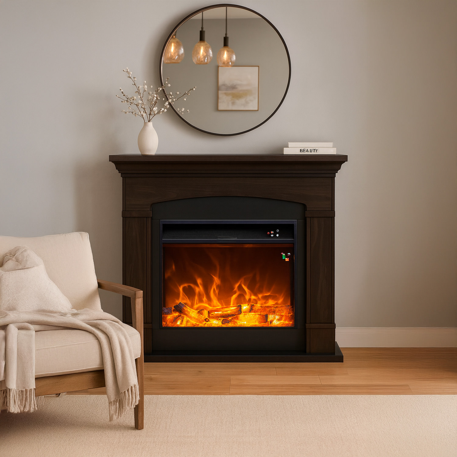 - 1-DISEÑO MODERNO EN WENGUÉ: Esta chimenea eléctrica con acabado en wengué añade un toque de elegancia moderna a cualquier espacio, perfecta para interiores contemporáneos.