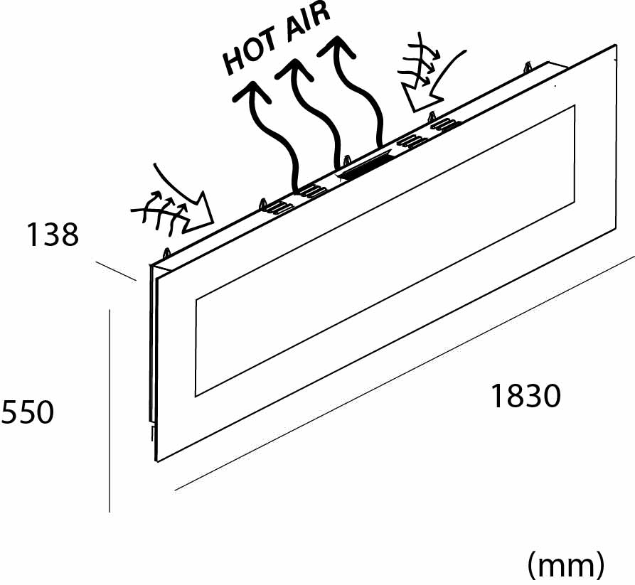 Por favor, tenga en cuenta que este modelo de chimenea está diseñado para colgarse en la pared, no es un modelo empotrable.