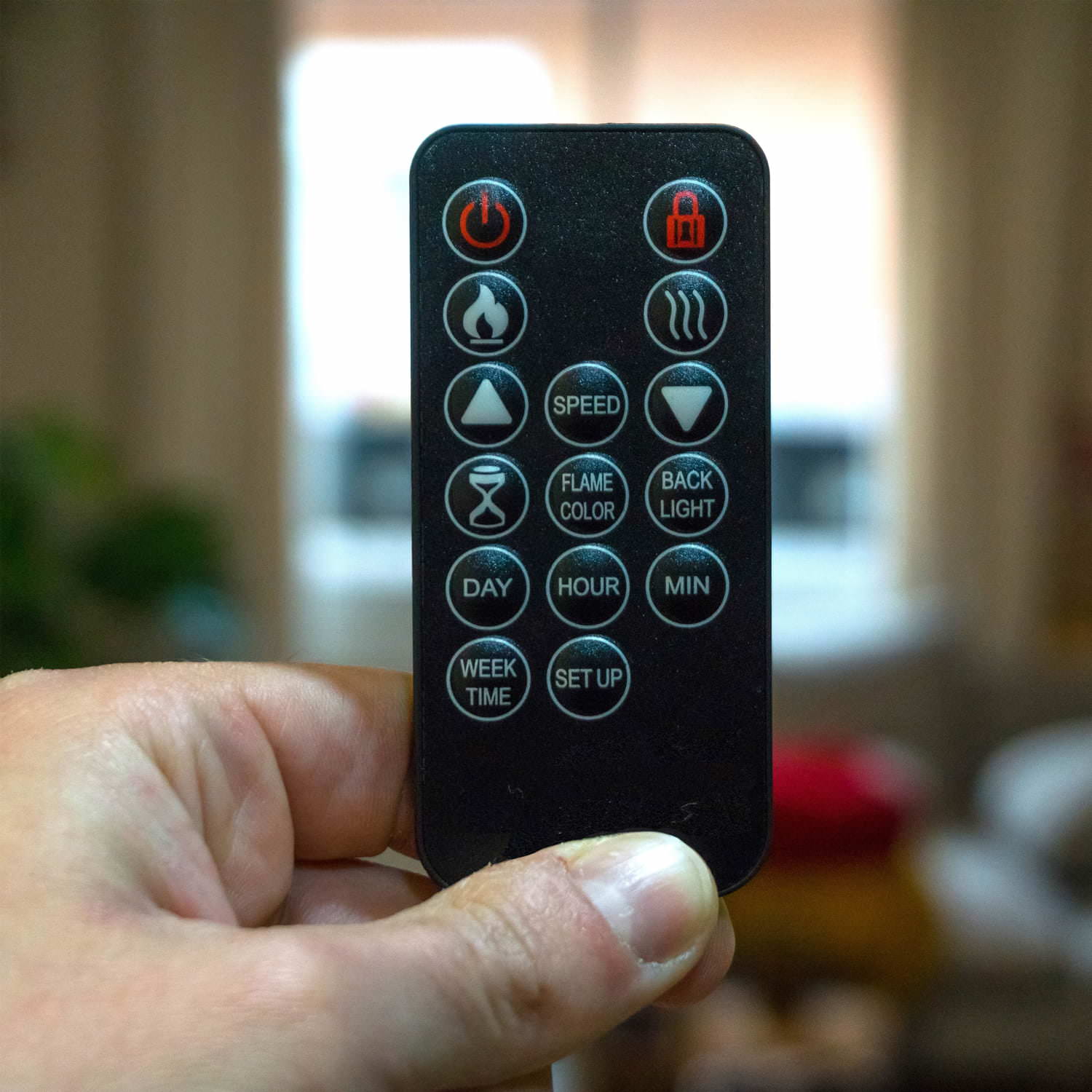 • 3-La comodidad está asegurada gracias al mando a distancia incluido, que le permite gestionar todas las funciones de la chimenea desde la comodidad de su sofá. Puede programar la calefacción para la semana, ajustar el termostato, activar el temporizador y optimizar el consumo de energía con el sensor de ventana abierta, todo con unos simples toques.