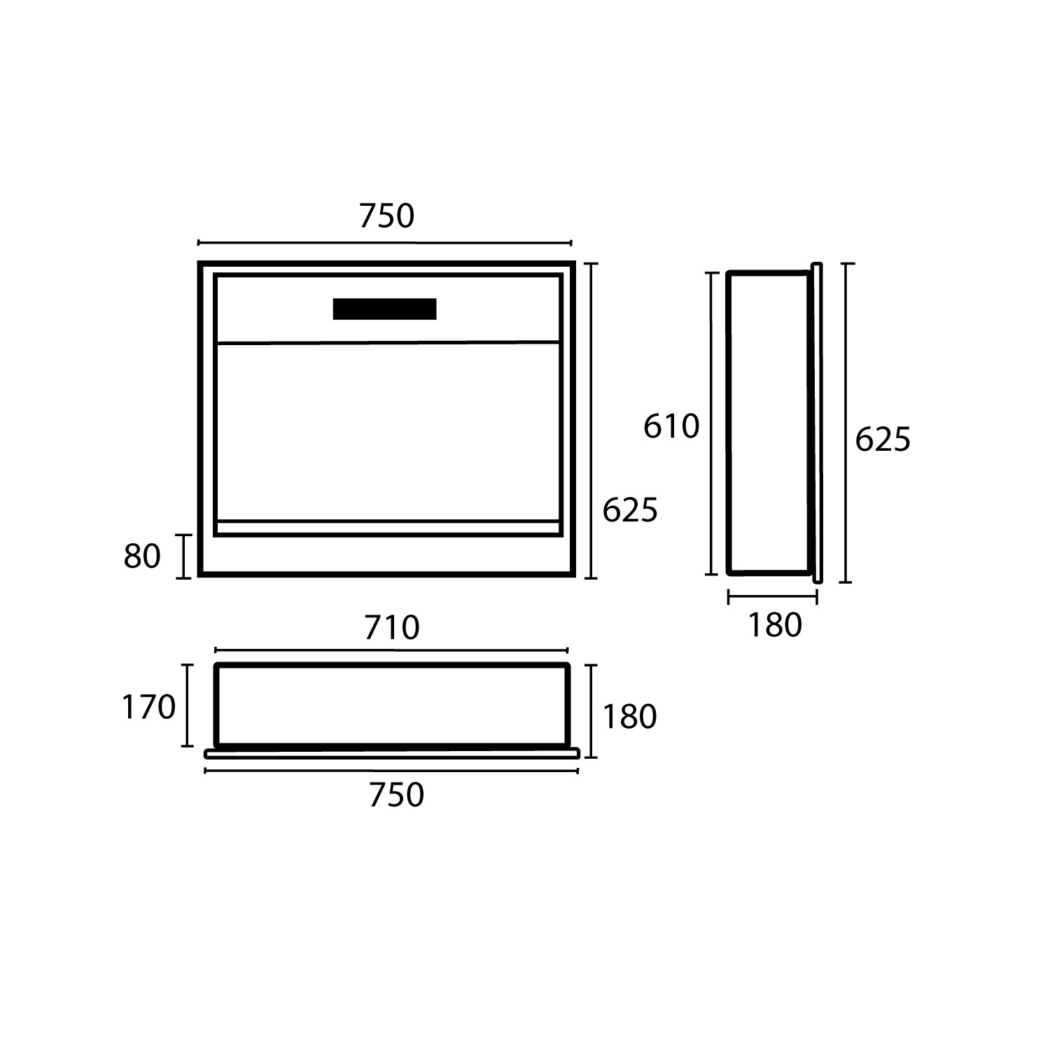 Abertura de empotramiento: 715 x 615 mm (con una tolerancia recomendada de 3 mm en anchura y altura)