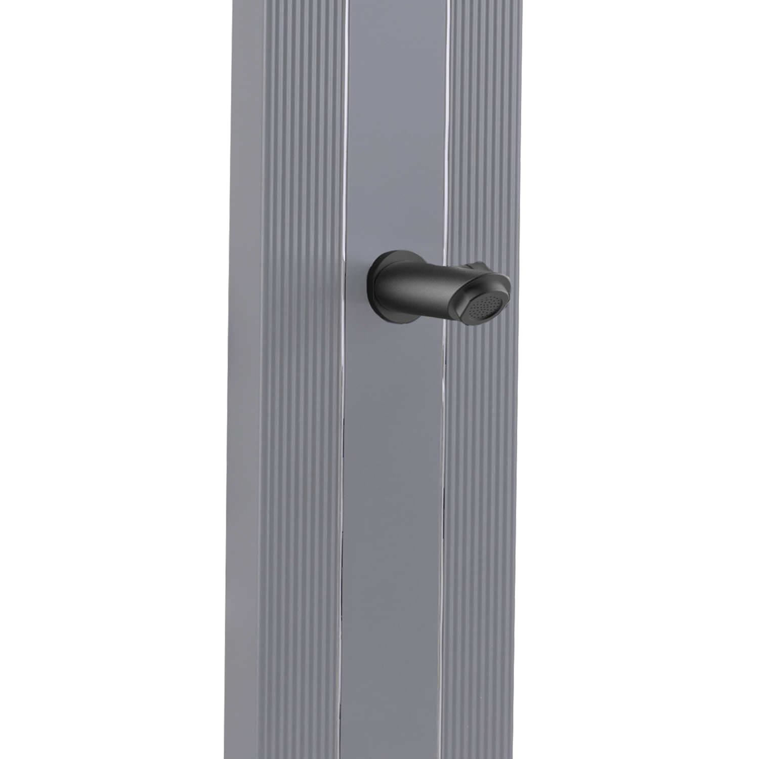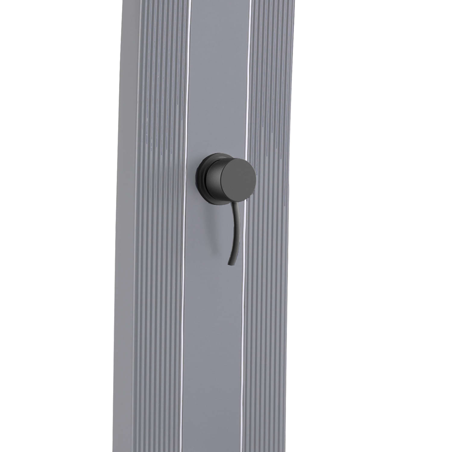 Esta ducha solar para piscina exterior ofrece un diseño moderno y elegante, utilizando los rayos del sol para calentar el agua de su depósito interior de 30 litros. Fabricada en aluminio de color plateado, es muy resistente a los agentes atmosféricos, lo que garantiza una larga vida útil.