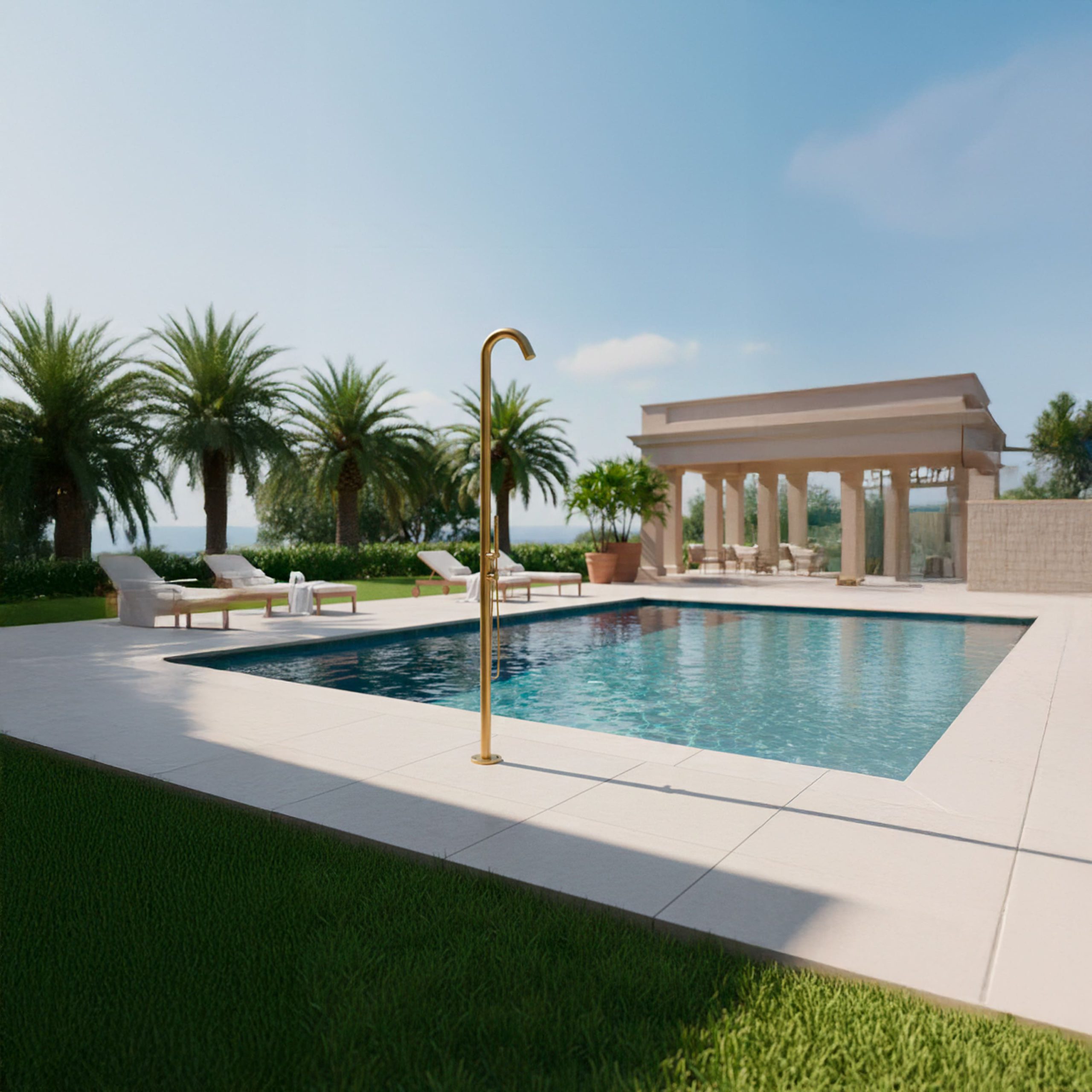 descubre la ducha de jardín sined alghero en acabado oro, la elección perfecta para quienes buscan calidad, elegancia y funcionalidad en un solo producto. fabricada en acero inoxidable aisi 316l, este modelo destaca por su resistencia excepcional a la corrosión, garantizando una durabilidad inigualable tanto en uso interior como exterior. su diseño moderno y sofisticado en acero satinado dorado aporta un toque de lujo sutil que se integra armoniosamente en cualquier ambiente, ya sea tu hogar o un espacio profesional.