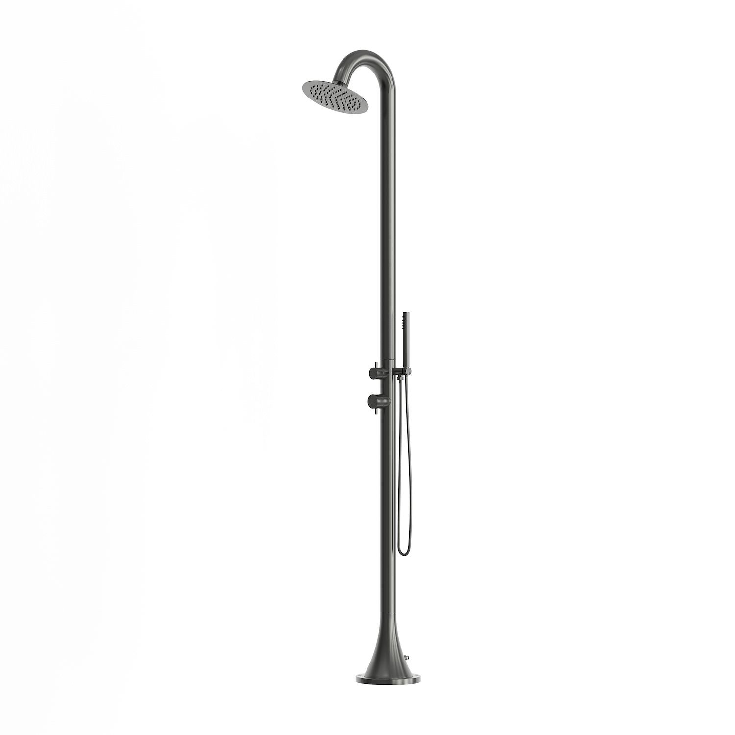 El modelo de ducha con teleducha LUNA D NERA es un ejemplo de cómo la funcionalidad puede encontrarse con el diseño. Fabricada en Aisi Inox 316L, esta ducha ofrece entradas de agua caliente y fría y se adapta perfectamente a cualquier instalación exterior. La columna de ducha de acero inoxidable negro no sólo añade un toque de clase, sino que también garantiza una durabilidad excepcional gracias a la calidad del acero utilizado.