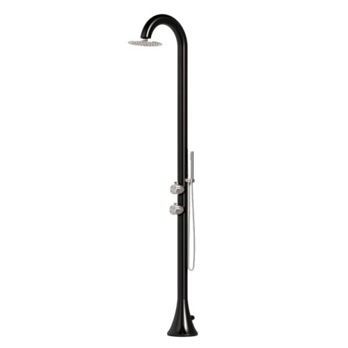 El modelo de ducha con teleducha LUNA D NERA es un ejemplo de cómo la funcionalidad puede encontrarse con el diseño. Fabricada en Aisi Inox 316L, esta ducha ofrece entradas de agua caliente y fría y se adapta perfectamente a cualquier instalación exterior. La columna de ducha de acero inoxidable negro no sólo añade un toque de clase, sino que también garantiza una durabilidad excepcional gracias a la calidad del acero utilizado.