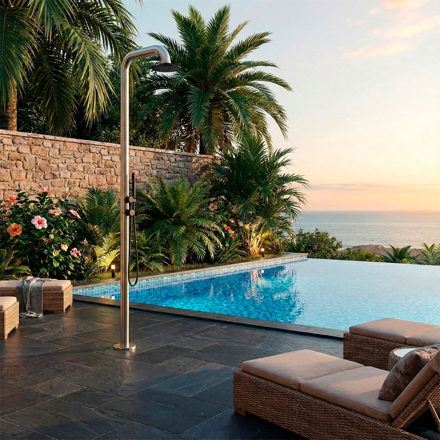 • 1-DUCHA EXTERIOR JARDÍN PREMIUM: La ducha de jardín de alta calidad modelo PULA de Acero Inoxidable está diseñada para cualquier instalación exterior, ya sea comercial o privada, en piscinas, jardines o spas.