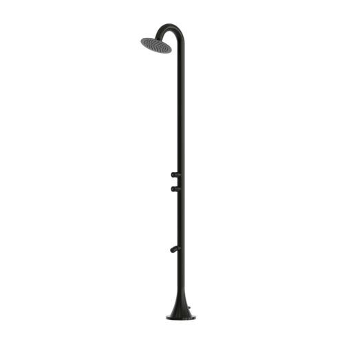 SINED Ducha de Exterior en Acero Inox náutico AISI 316L Negro Satinado Mezclador y Ducha de mano Diámetro 6 cm Entrada Agua Caliente y Fría a traves del suelo 230 cm DOCCIA CHIA NERA