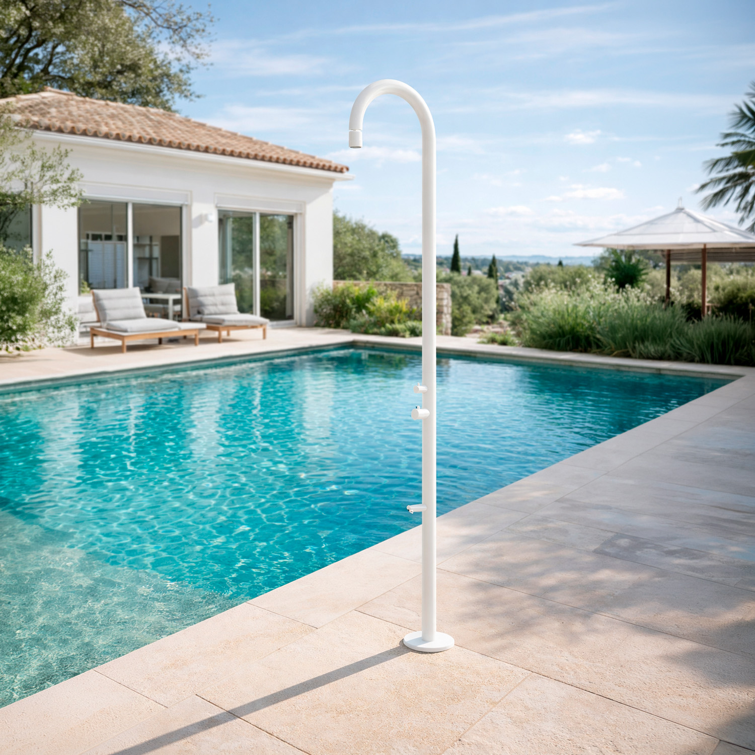 Marca ducha blanca en acero inoxidable 316L con alta resistencia a la corrosión y durabilidad garantizada diseno funcional y materiales de calidad superior – modelo Orosei