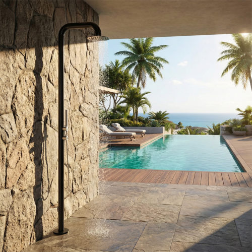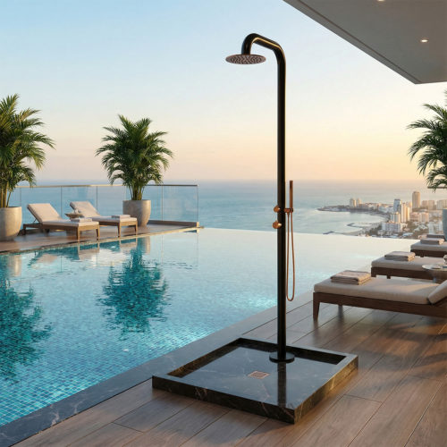 A diferencia de las duchas exteriores con calefacción solar, no tiene que preocuparse de colocar esta ducha bajo la luz directa del sol. La única limitación es su elección.