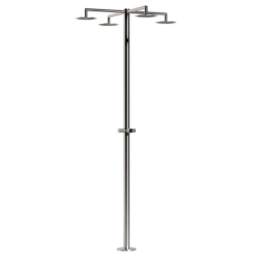SINED Ducha exterior SINED Santadi de monedas en acero inoxidable AISI 316L PVD oro rosa sólo con conexión trasera de 1/2 pulgada, rociador Ø 25 cm y fijación al suelo con 4 tacos. Acabado en acero inoxidable.