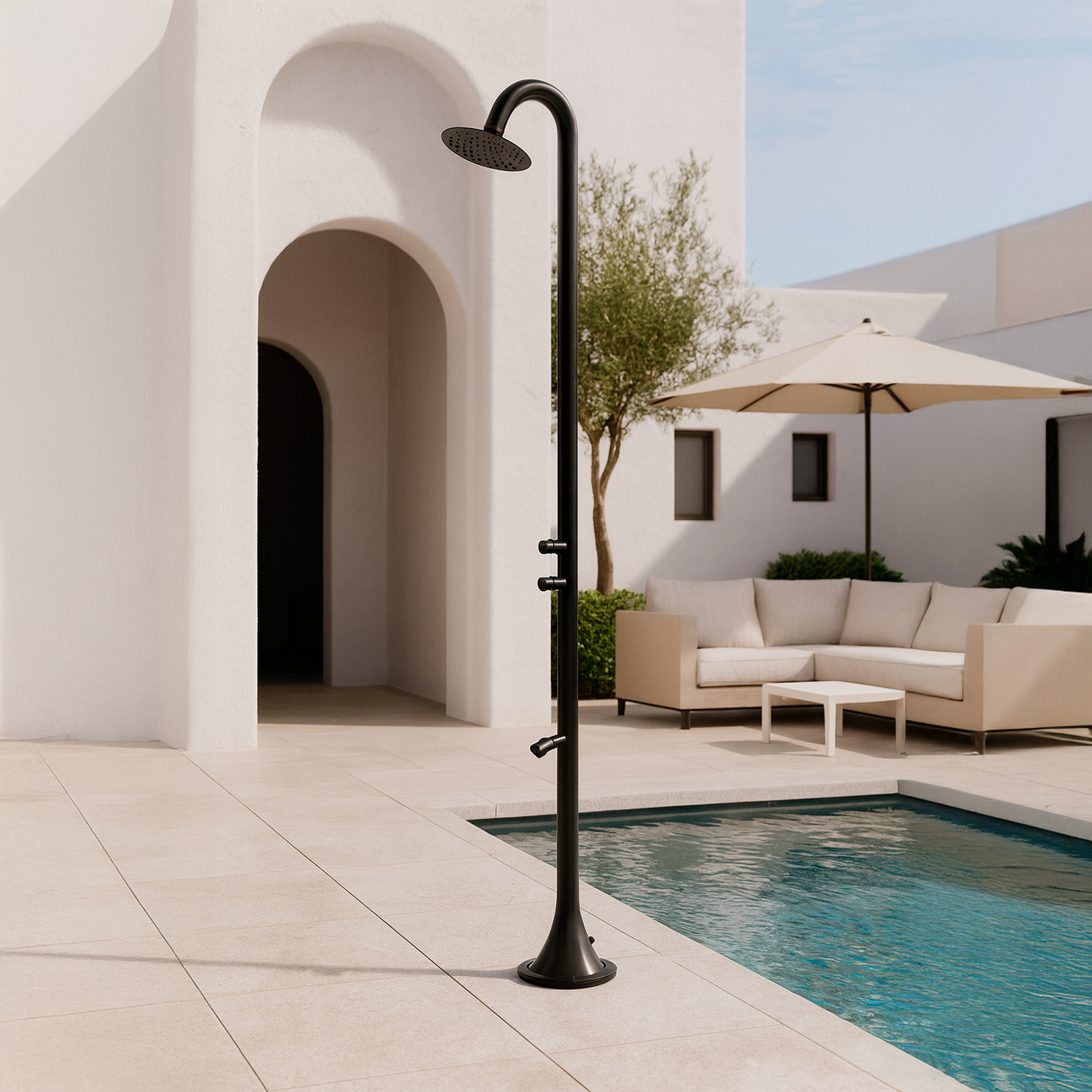 SINED Nueva Ducha De Acero Inoxidable Nautico Luna En Negro, Ideal Para Exteriores. Para Jardines o Zonas De Piscina, Ofrece Un Refrescante Chorro De Agua Fría Resistente a La Corrosión y a La Intemperie. Durabilidad, Elegancia y Diseño Italiano Atemporal.