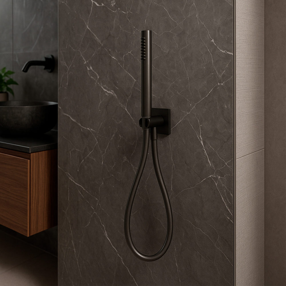 SINED ducha de acero 316L con acabado PVD color canna fucile conexión universal compatible con duchas interiores y exteriores alta resistencia DOCCINO-LEVANTE-CANNA-FUCILE